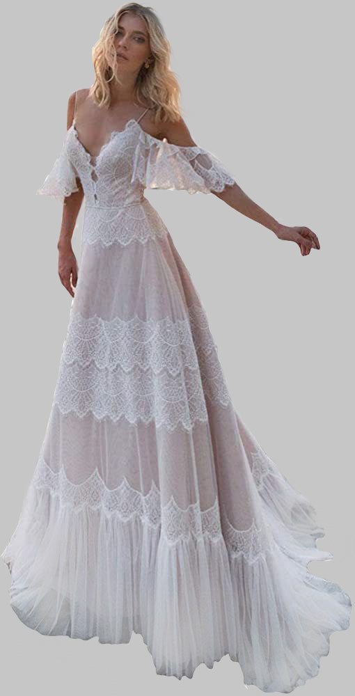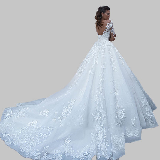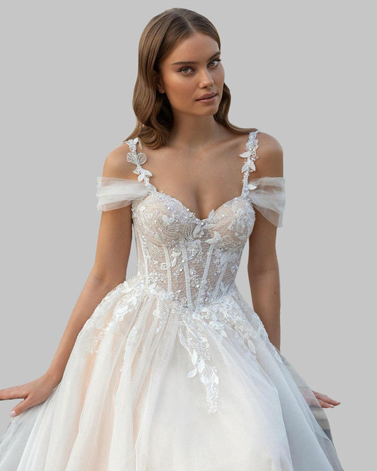 Elegant Off-Shoulder Wedding Dress with Intricate Lace Details