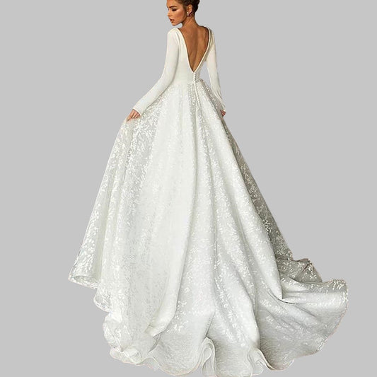 Stunning Backless Lace Wedding Dress with Long Sleeves