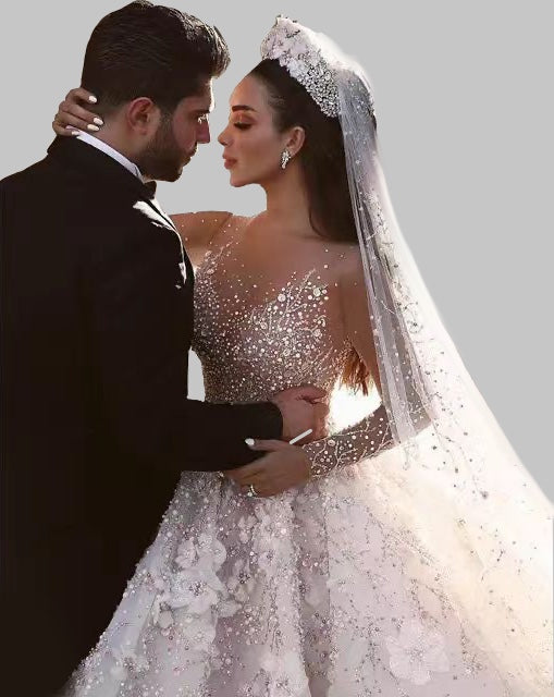 Exquisite Floral Embroidered Ball Gown Wedding Dress